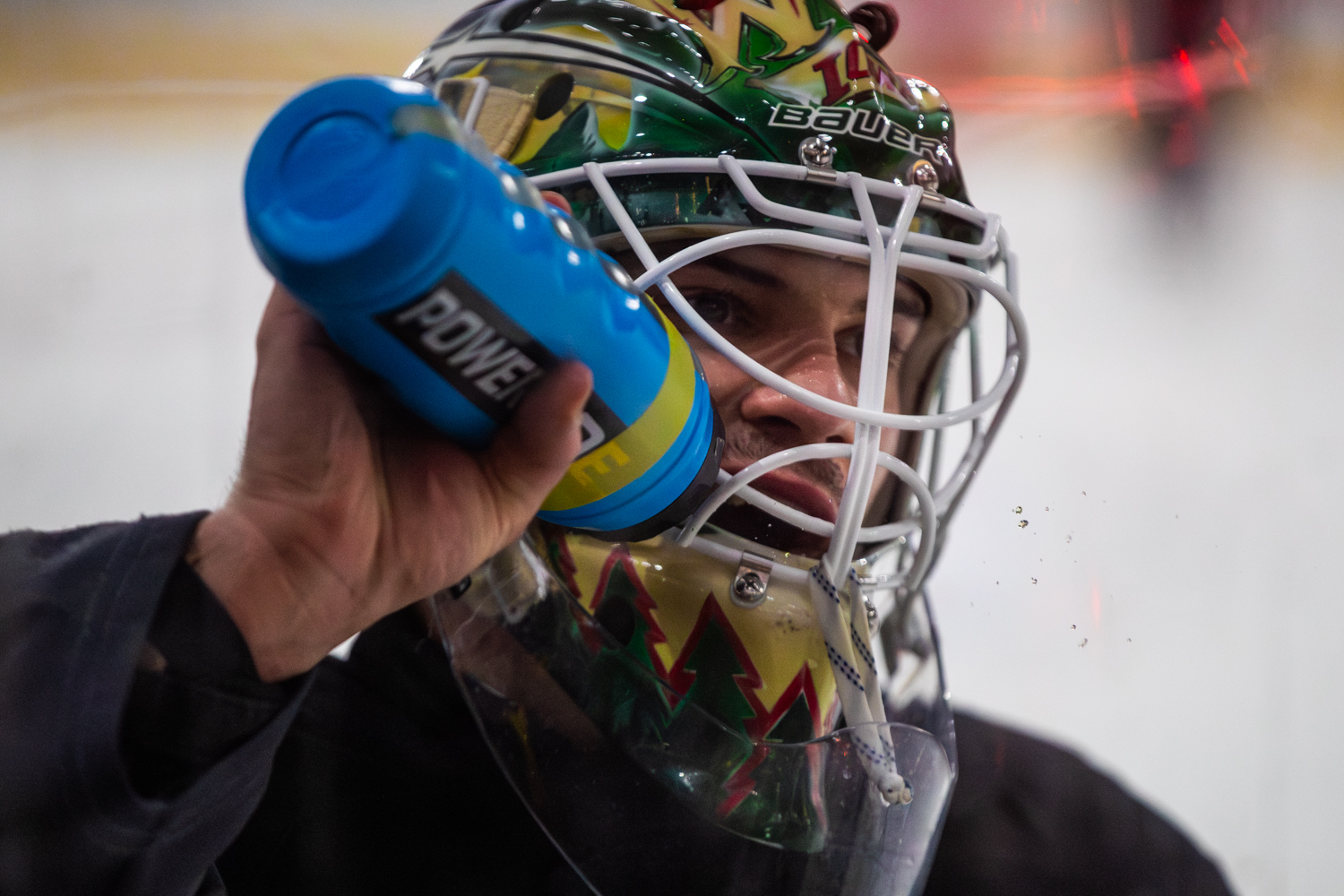 A unique aspect of being a goaltender is the ability to customize equipment, which both players take seriously. Mercer enjoys personalizing his mask with various designs, including tributes to his dog and a logo for “Hockey Fights Cancer.” He shared, “My family has been affected by cancer, and I think it is a nice gesture to put it on the back of my mask and know that the ones I’ve lost are always with me.” Giannuzzi’s masks also reflect his experiences, featuring designs inspired by landmarks from his time in Portland, including a bridge he drove over daily. “Now five masks hang at my house back home,” he noted.