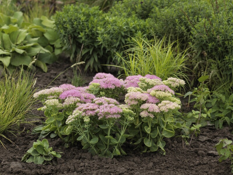 Sedum Spectacular: This winter-hardy perennial impresses with its compact, mounding habit and clusters of light pink flowers. Growing to about 14 inches, it tolerates hot and dry conditions, making it a versatile addition to any landscape.