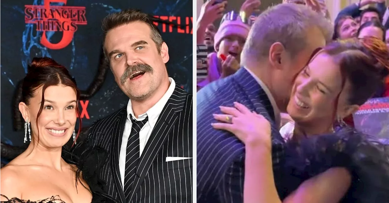 UPDATE: Millie Bobby Brown and David Harbour have just made headlines after they were spotted embracing at the “Stranger Things” premiere, a moment that comes amid serious allegations of bullying and harassment filed against Harbour by his co-star. This unexpected display of camaraderie raises eyebrows, especially following recent reports surrounding Harbour’s personal life and the filming of the show’s final season.